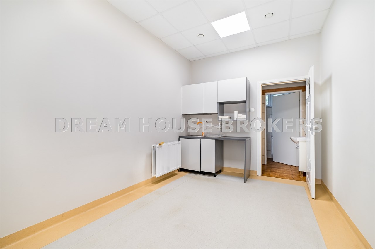 - 16 indywidualnych pomieszczeń, wyposażonych we własne węzły sanitarne - przystosowane obecnie do pełnienia roli gabinetów lekarskich, diagnostyczno-zabiegowych. Istnieje także możliwość dowolnej adaptacji do innej funkcji (np. biura, kancelarie). Pomieszczenia mieszczące się na parterze posiadają szklenia w formie witryn sklepowych i wygodne wejście z ulicy, dzięki czemu idealnie nadają się również jako powierzchnie handlowe (np. sklepy, apteka).